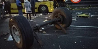 "Жесть на трассе: Пункт назначения с украинским автобусом в Чехии, в 100 км от границы. На трассе опрокинулся прицеп трактора. Колесная ось полетела в лобовое автобуса с соотечественниками", - говорится в сообщении.