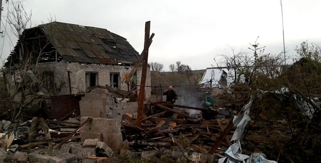 В штабе АТО показали последствия артиллерийского обстрела села на Донбассе