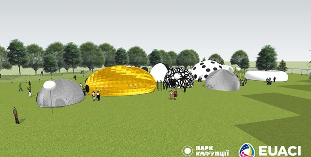 Вблизи парк будет похож на большие надувные шары – "символы мыльных пузырей и пустых обещаний, которые всегда сопровождают коррупцию".