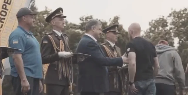 На видео видно, что Толмачев пожал руку другим участникам церемонии, но проигнорировал протянутую руку президента. "Азовец" демонстративно не заметил Порошенко, даже когда тот похлопал его по плечу.