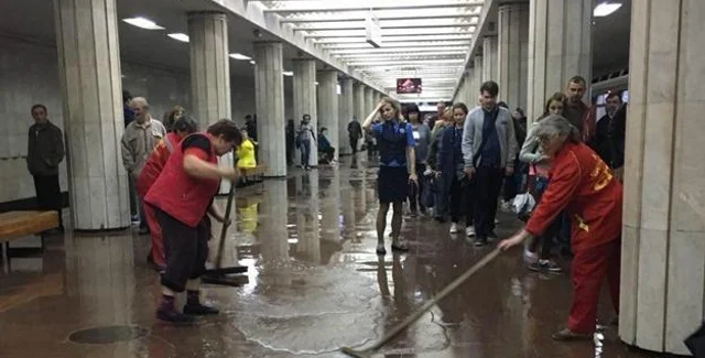Как пояснили в пресс-службе метрополитена, ЧП произошло из-за прорыва трубопровода воды на станции.