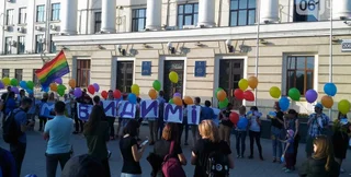 Акция под названием "Радужный флешмоб 2018" проходила возле здания местной мэрии и была приурочена к Международному дню противодействия гомофобии и трансфобии, который ежегодно отмечают 17 мая.