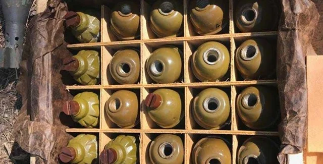 Отмечается, что в замаскированном тайнике в лесополосе хранилось около 250 гранат ВОГ, 37 мин, 23 гранаты РГД-5, 13 гранат Ф-1, около 500 патронов калибра 12.7 мм, запалы, выстрелы к гранатомету и другие боеприпасы.