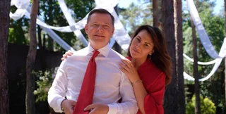 На фото с церемонии бракосочетания невеста запечатлена в нарядном красном платье, а сам нардеп в синем костюме с красным галстуком.