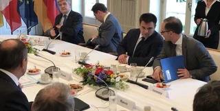 Также немецкий МИД разместил фотографию всех четырех министров, которые сфотографировались перед входом на виллу Борзиг, где проходит встреча.