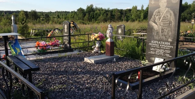 В деревне Выбуты под Псковом на безымянных могилах, которые появились в 2014 году, установили памятники с именами погибших, датами смерти и портретами в форме десанта, предположительно погибших на Донбассе.