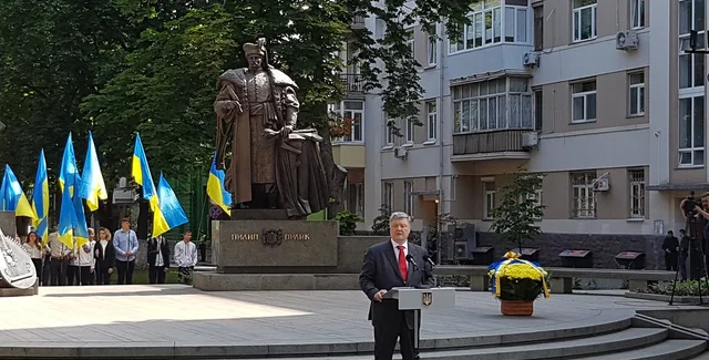 Президент Петр Порошенко пообещал внести в Раду поправки в Конституцию, которые закрепят курс Украины на вступление в НАТО и Евросоюз. Об этом он заявил по случаю Дня Конституции возле памятника Пилипу Орлику.