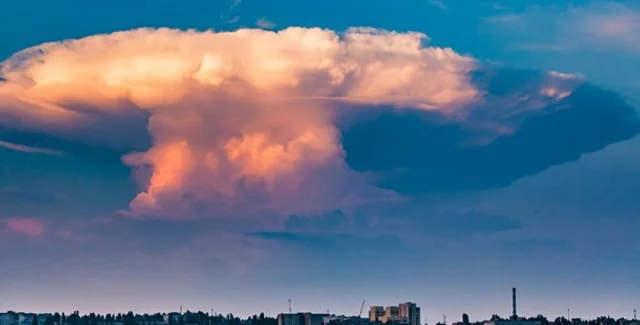 Житель Николаева Денис Сисин обнародовал в Сети фотографии неизвестного происхождения облака, которое было замечено в небе над городом. По форме оно похоже на так называемый "ядерный гриб", пишет автор в Facebook.
