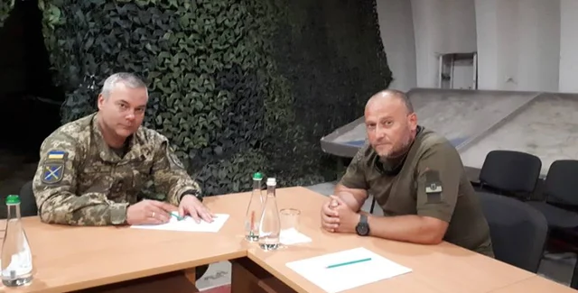 Командующий объединенных сил Сергей Наев и командующий Украинской добровольческой армии (УДА) Дмитрий Ярош на встрече в Краматорске обсудили вопрос участия бойцов УДА в рядах ВСУ при заключении контракта, а также рассмотрели возможность участия этих бойцов в подготовке сил для охраны госграницы.