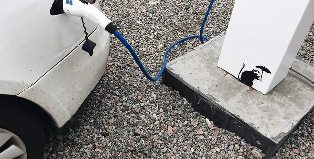 Изображение "двуглавого" грифа с топливо-раздаточными пистолетами вместо голов обозначили тэгом Бэнкси, хотя сам художник крайне редко оставляет свою подпись. Также на территории заправки нарисовали мышь, которая считается традиционным образом для работ Бэнкси.