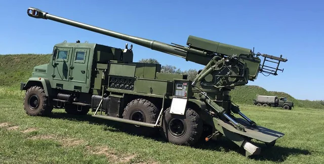 Позже фото "Богданы" уже в боевом состоянии поделился на своей странице советник министра обороны Юрий Бирюков. Он уточнил, что у новой САУ ствол украинского производства, спаренная бронированная кабина, автоматизированная система наведения и заряжания боеприпасов. Комментаторы заметили, что по бокам у "Богданы" контейнеры для минимум 20-ти снарядов.