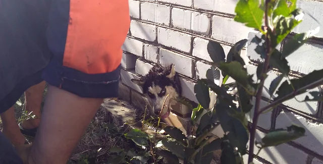 Хозяин своими силами не смог вызволить Белку из кирпичного плена