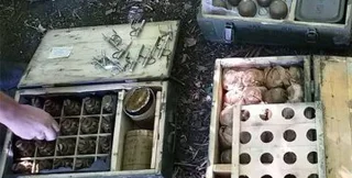 Нашел схрон местный житель, когда искал металлолом. Из землянки полицейские извлекли 16 ящиков с патронами разного калибра, восемь килограмм взрывчатки, 6о гранат РГД-5, Ф-1 та РГН с запалами, два реактивных противотанковых гранатомета со снарядами и 12 дымовых шашек.