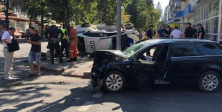 На перекрестке в автомобиль патрульных врезалось Audi A4, водитель которого двигался на зеленый свет, но не предоставил преимущество в движении полицейским.