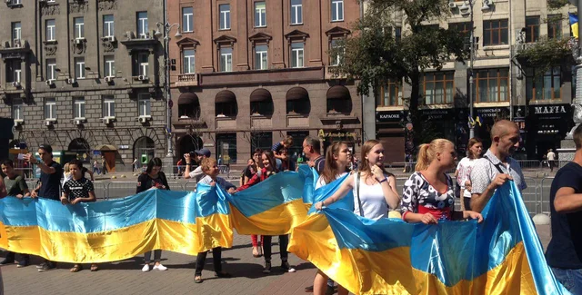 В центре Киева в День Независимости растянули 400-метровый национальный флаг.