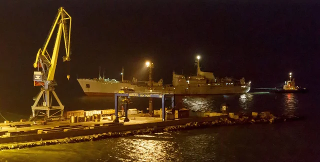 Дальше их путь лежит в Бердянск. Там "Донбасс" и "Корец" должны усилить инфраструктуру создаваемой на Азовском море военно-морской базы.