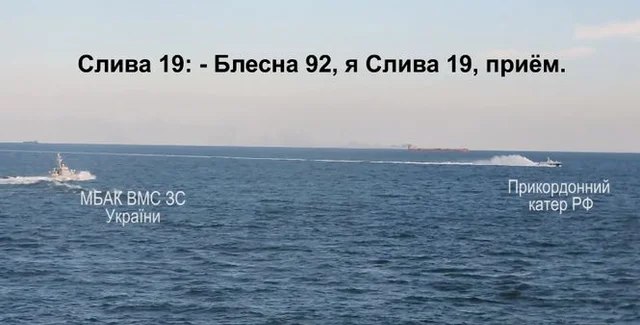 На странице ВМС Украины в Facebook отмечается, что российский катер на большой скорости пытался сблизиться с украинским кораблями.