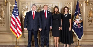 Стоит отметить, что Порошенко и Трамп действительно одеты в черные костюмы с красными галстуками, а их супруги – в черные классические платья.