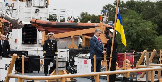 Президент Украины Петр Порошенко во время посещения американской базы Береговой охраны Балтимор отметил чрезвычайную важность передачи ВМС Украины двух патрульных катеров береговой охраны класса Island.