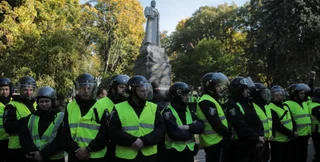 Также правоохранители охраняют памятник генералу Николаю Ватутину, который в частности был указан активистами, как объект их акции.