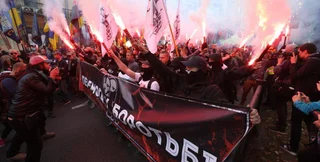 В Киеве на Европейской площади завершился марш УПА под лозунгом "Вернем Украину украинцам", приуроченный 76-летию создания Украинской повстанческой армии.