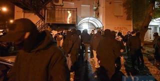 Участники погрома выбили ролету, защищавшую окно, и бросили внутрь помещения файеры. На стене дома написали "Слава нации", "Смерть врагам".