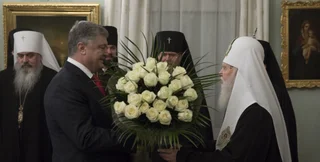Порошенко подарил Филарету букет белых роз