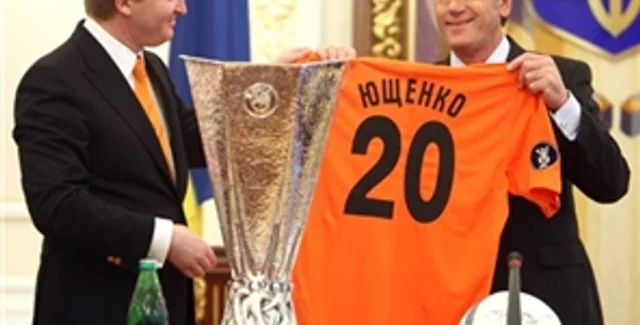 Президент Украины Виктор Ющенко наградил игроков и работников футбольного клуба «Шахтер» (Донецк), который 20 мая выиграл Кубок УЕФА