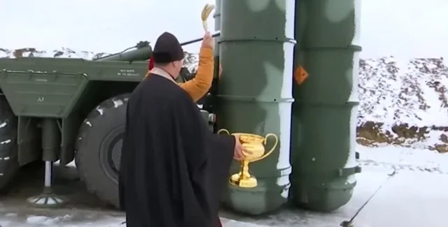 "Ракетный комплекс освятили священники православной церкви Московского патриархата", - говорится в сообщении.