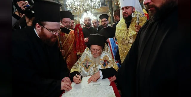 В документе, в частности, отмечается: "... Наша Святая Христова Большая Церковь благословляет и провозглашает Православную Церковь Украины Автокефальной... Такое решенное и рассужденное, и в радости возвещенное вам от уважаемого Центра Православия было соборно утверждено, для постоянного сохранения выдается этот Патриарший и Синодальный Томос, написанный и подписанный в Кодексе нашей Великой Константинопольской Церкви Христовой, врученный в точной и идентичной копии Блаженнейшему предстоятелю Святейшей Церкви Украины, кир Епифанию и Его Высокопревосходительству Президенту страны господину Петру Порошенко, для вечного доказательства и постоянного представления. Года две тысячи девятнадцатого, месяца января, 6 числа, индиктиона 12".