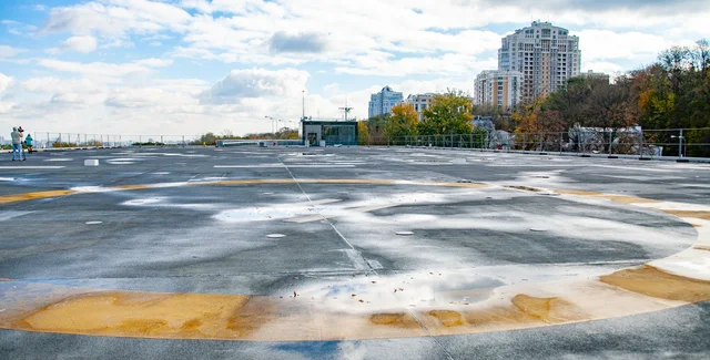 Вертолетная площадка принадлежит ООО "Амадеус Ко". Согласно постановлению Хозяйственного суда Киева от 24 января 2019 года, Нацагентству по вопросам выявления, розыска и управления активами, полученными от коррупционных и других преступлений, и коммунальному предприятию "Центр организации дорожного движения" запретили выполнение договора по управлению имуществом от 18 октября 2018 года.