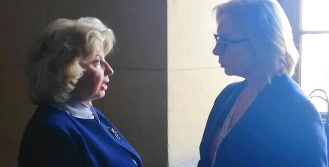 Уполномоченный Верховной Рады по правам человека Людмила Денисова провела разговор с омбудсменом РФ Татьяной Москальковой в коридоре здания парламента Греции.