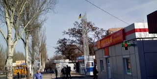 СМИ также сообщают, что возле флагштока неизвестные оставили коробку. На место немедленно выехала местная "полиция" .