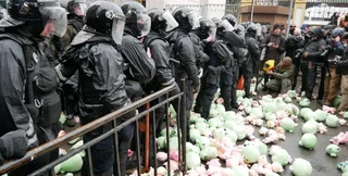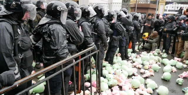 Акция протеста в Киеве: Администрацию президента забросали плюшевыми свиньями