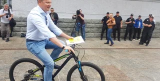 "Я сейчас поеду туда – велосипед на входе поставлю. Надеюсь, его никто не украдет во время консультаций", – сказал он журналистам.