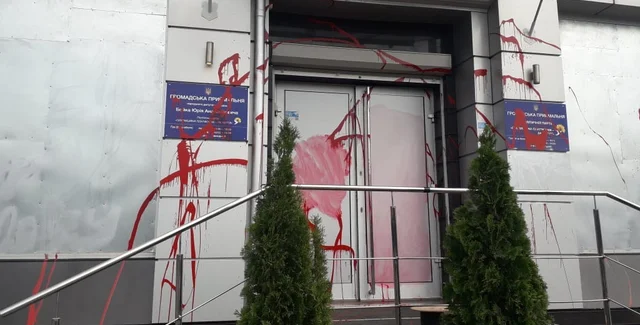 "Согласно заявлению руководителя приемной, неизвестные лица облили красной краской фасад, двери и окна помещения", – отметили правоохранители.