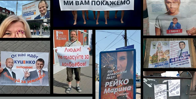 К подобному разряду Денис Келеберденко, креативный директор рекламного агентства BBDO Ukraine, относит билборды с вульгарным призывом "Слуги народа" "Сделаем их снова!", с пикантной новостью от них же "Дубинский — не гей!", с обещанием Радикальной партии Олега Ляшко "Ликвидируем 250 депутатов" и с честным признанием кандидата из Чернигова Марины Рейко "Иду драконить Раду!"
