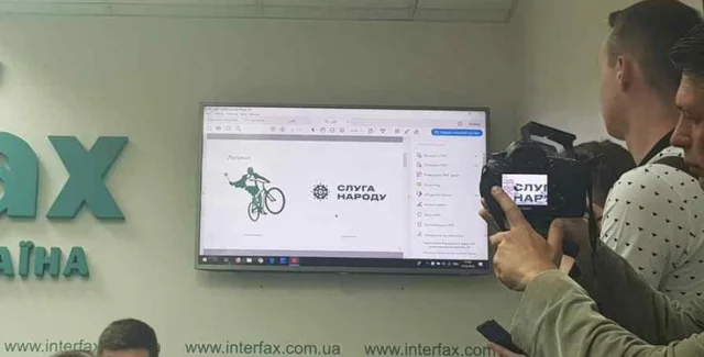 Партия "Слуга народа" отказалась использовать презентованный в мае логотип, на котором изображен человек на велосипеде и с булавой в руке.