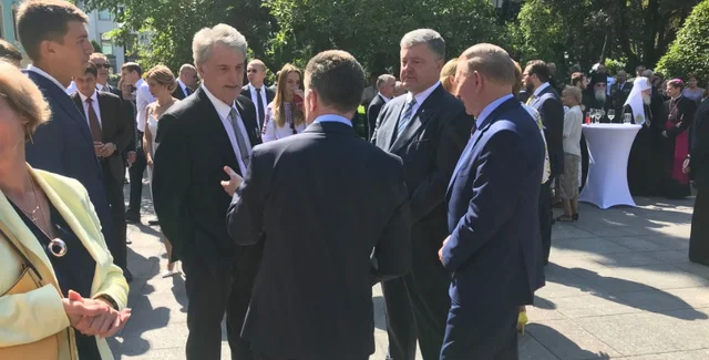 Так, Порошенко присоединился к Владимиру Зеленскому, Леониду Кравчуку, Леониду Кучме и Виктору Ющенко во время приема президентов у Мариинского дворца уже после Шествия Достоинства.