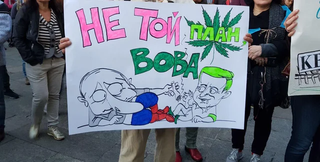 Митингующие требуют не подписывать капитуляционных соглашений с президентом Российской Федерации Владимиром Путиным