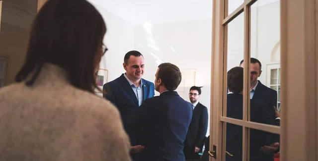 В тот же день президент Франции встретился с украинским режиссером Олегом Сенцовым. Лидер Франции поинтересовался у бывшего политзаключенного, продолжает ли тот писать тексты.
