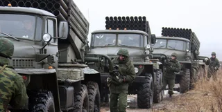 Среди замаскированной артиллерии – 122-мм реактивные системы залпового огня БМ-21 "Град", 122-мм самоходные артиллерийские установки 2С1 "Гвоздика" и 122-мм гаубицы "Д-30".