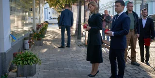Президент Украины Владимир Зеленский и первая леди Елена Зеленская пришли к Стене памяти погибших за единство Украины возле Михайловского Златоверхого монастыря в Киеве, где почтили память погибших военнослужащих и правоохранителей.