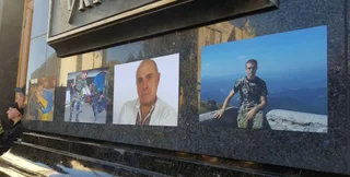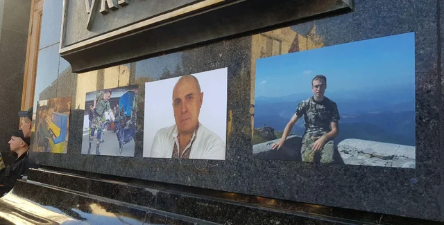 Пройдя через центр столицы, участники мероприятия двинулись к Офису президента, где наклеили на здание портреты погибших украинских бойцов.