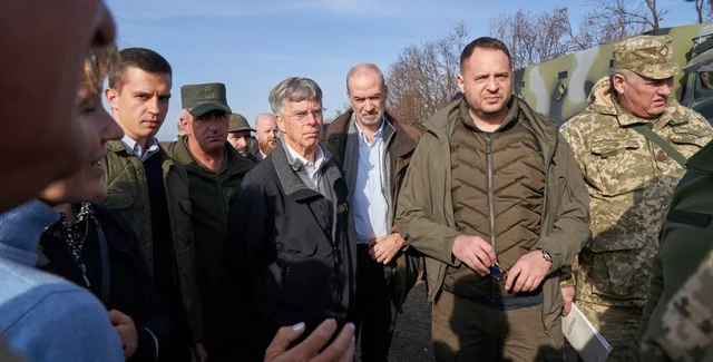 Помощник президента Андрей Ермак, представители Кабмина и иностранные послы посетили украинские позиции на участках разведения войск около Петровского и Золотого-4.