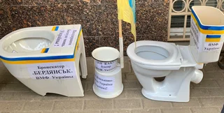 Аналогичная акция прошла и в Москвке, только там унитазы, разукрашенные в цвета украинского флага принесли под посольство Украины. Об этом сообщается в Telegram-канале "Остапа понесло".