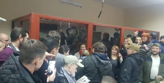 Судья отклонила ходатайство по смене судьи Вовка. Люди, которые пришли поддержать Кузьменко кричат "ганьба".