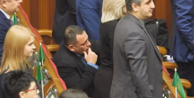 - Журналист Андрей Дзындзя снял видео на котором видно, что, когда депутаты поднялись со своих мест, Бужанский демонстративно остался сидеть. Также видно, что ему напоминают, что нужно подняться, но он отказывается.