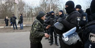 В полиции рассказывают, что во время прибытия колонны автобусов, протестующие начали забрасывать их и правоохранителей камнями.