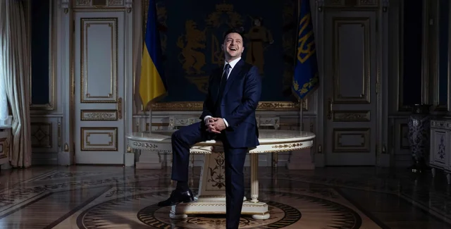 Свое президентство сравнивет с пребыванием на протекающей лодке: "Повсюду дыры, и руками и ногами ты пытаешься их закрыть. Вот как мы живем. Мы закрываем дыры". Когда журналисты говорят, что это похоже на тонущий корабль, Зеленский добавляет: "Но мы не тонем!".